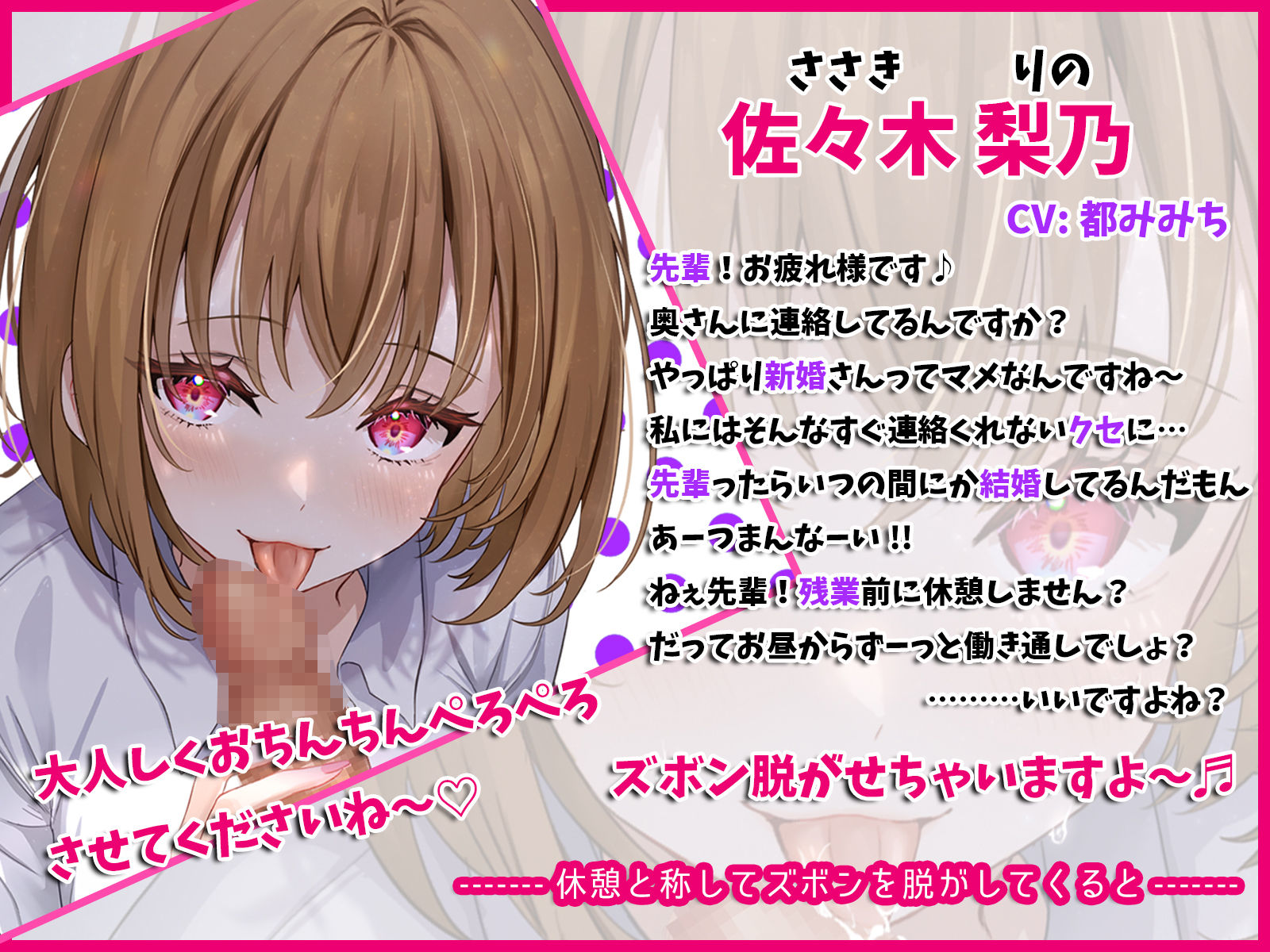 【からかい上手な可愛い後輩の誘惑ベロチュー。連日続いた残業中に何度も生おちんぽ喰べられちゃった新婚の俺】 作者名