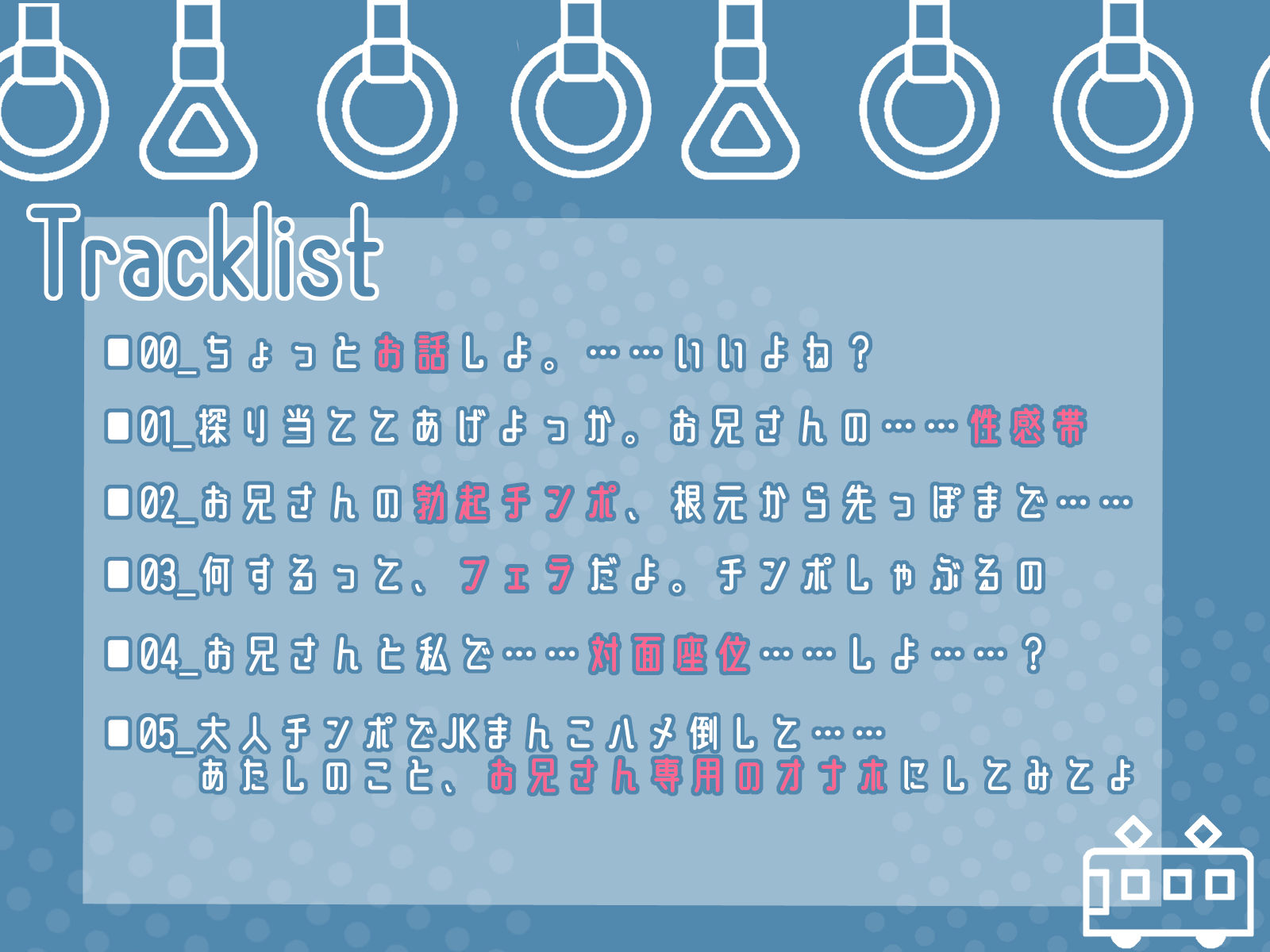 ジャンル: 中出し、退廃・背徳・インモラル、電車、男性向け、成人向け、ASMR、バイノーラル、連続絶頂