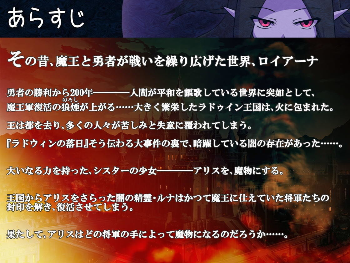 ジャンル: ファンタジー、デモ・体験版あり、ふたなり、触手、人妻・主婦、寝取り・寝取られ・NTR、アドベンチャー、パイズリ、人外娘・モンスター娘、異種姦、人体改造、男性向け、成人向け
