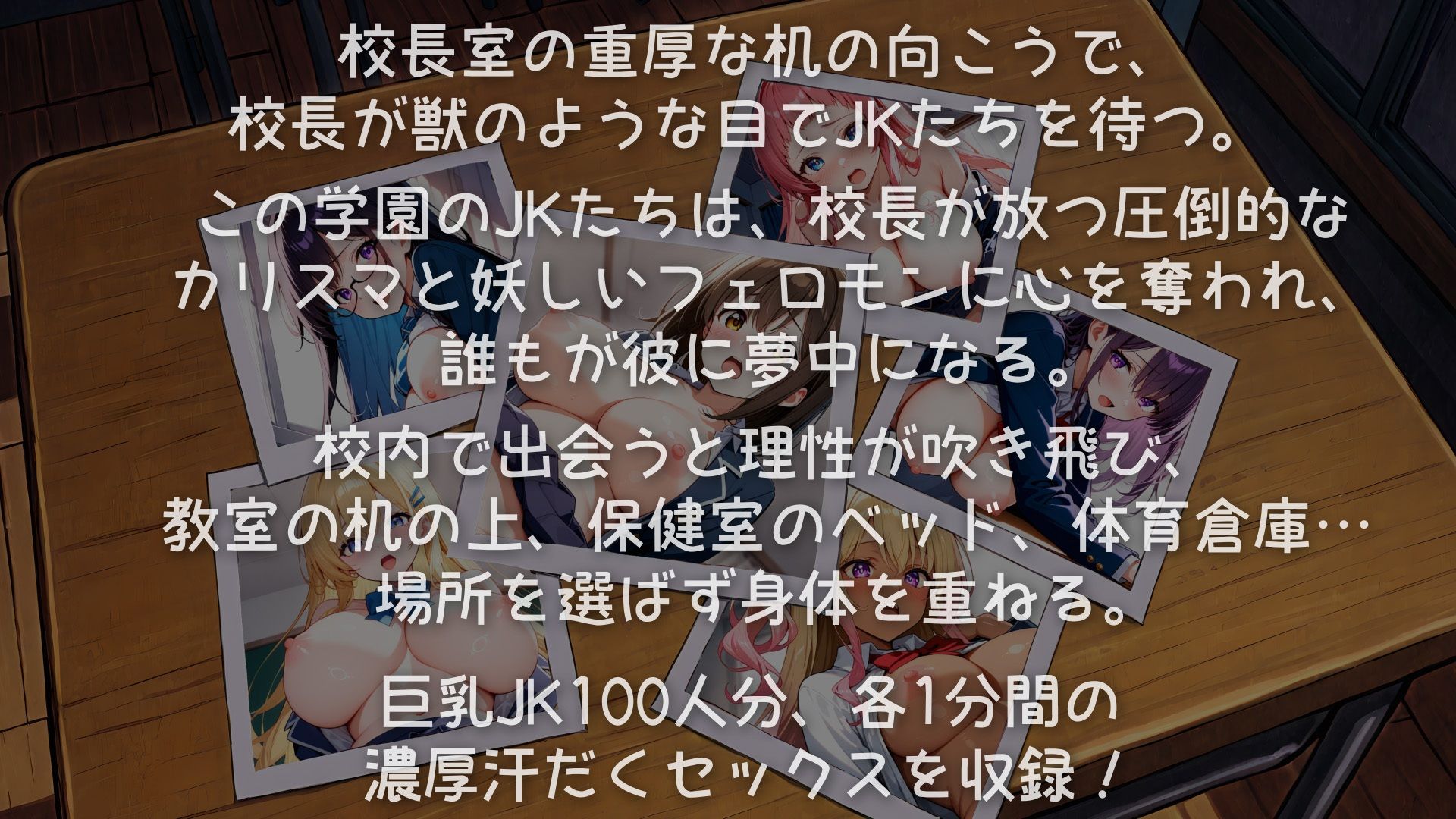 この学園のJKたちは、校長が放つ圧倒的なカリスマと妖しいフェロモンに心を奪われ、誰もが彼に夢中になる。