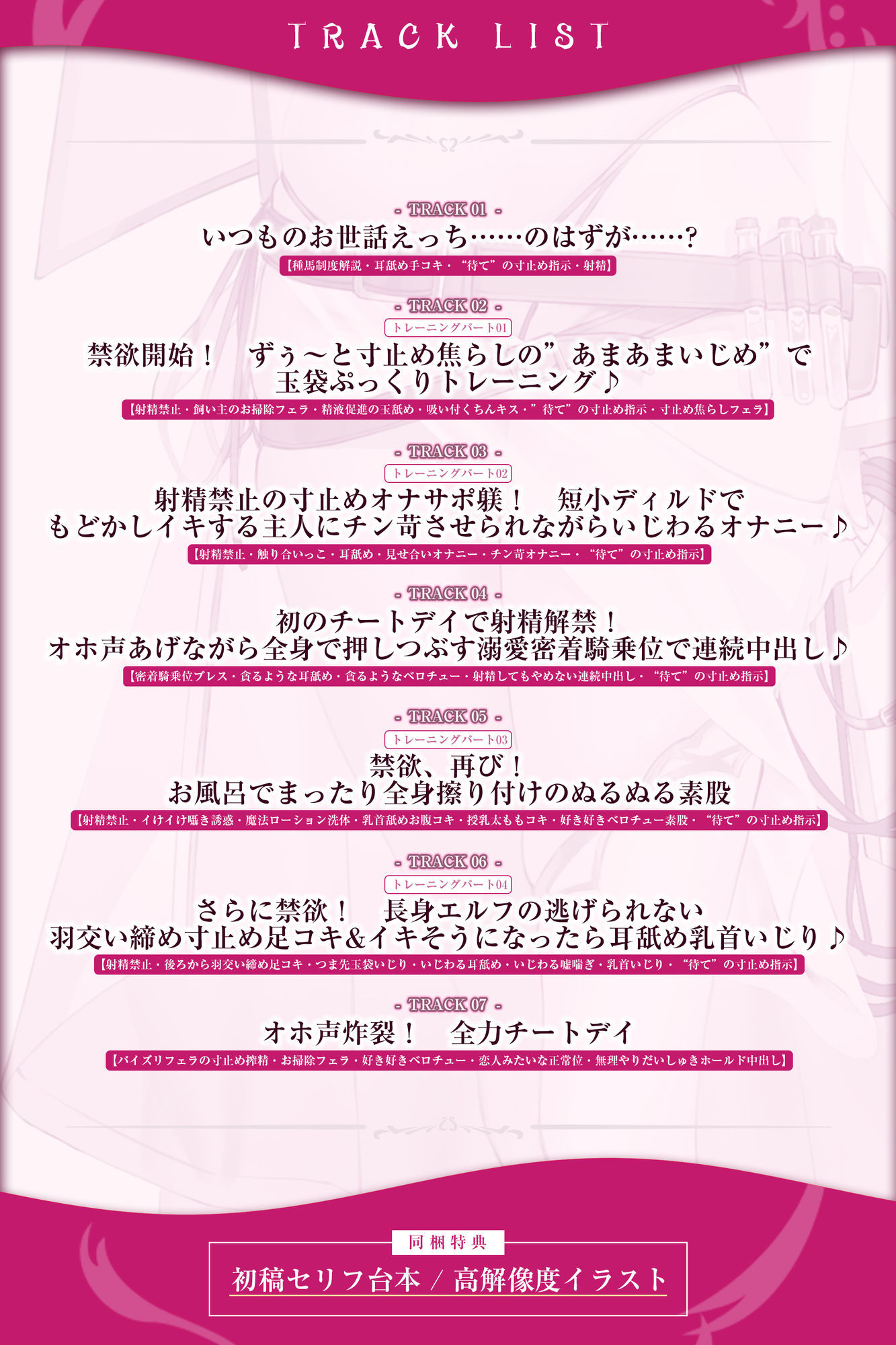 すっかりセックスにドハマりした天才エルフと’禁欲トレーニング’&’チートデイ’による全力えっちできる音声を126分たっぷり収録♪