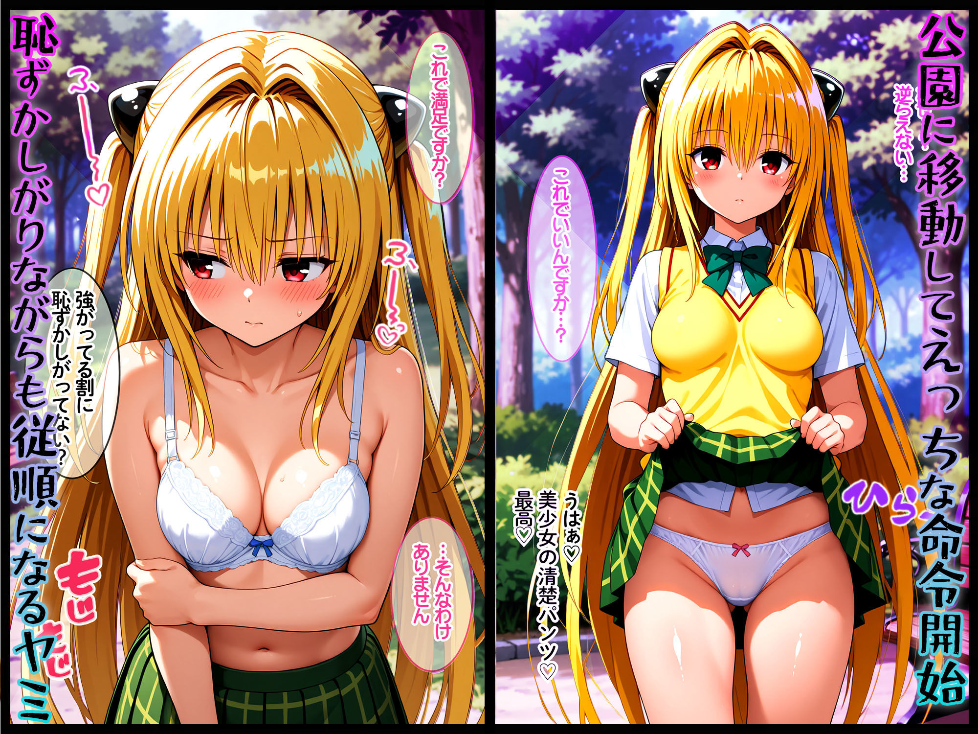 キスで唾液を摂取させることで催淫状態にできる特殊能力を持つ変態おじさんが、ToLOVEるヒロインのヤミを催淫状態にして好き勝手犯して、完堕ちさせる話です。